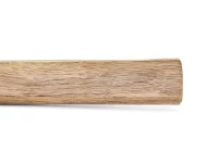 -Wert, Messgröße für die Härte des Stahls, liegt bei 61. VG-10 ist ein Edelstahl und enthält im Unterschied zu den Kohlenstoffstählen Aogami oder Shirogami ca. 15% Chrom. Die Ummantelung besteht aus 16 Lagen härterem und 18 etwas weicherem Nickel Damast. So dass Härte, Schärfe und die sinnvolle Elastizität in einem hervorragenden Verhältnis zueinanderstehen. Finish: Optisch wird die Klinge einerseits durch die Damast Lagen, andererseits – im oberen Bereich – durch das Hammering dominiert. Bevor die Klinge gehämmert wird, bearbeitet Yoshimi die Klingen-Oberfläche mit einem besonders feinen Schliff. In Test hat sich herausgestellt, dass der eckige, besondere Stil des Hammerings den Antihaft-Effekt für Schnittgut sehr gut unterstützt. Griff: Der Griff dieser Messer ist aus hochwertigem, seltenem
