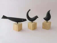 Die dekorative Figur Tori steht stolz auf einem Holzsockel und strahlt pfiffigen Optimismus aus.