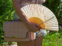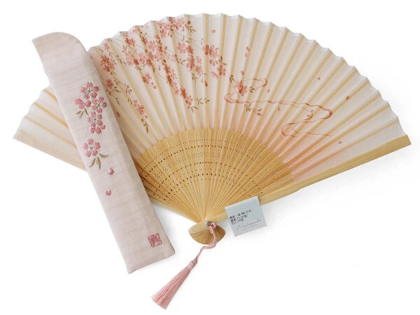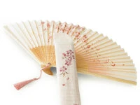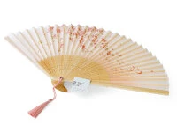 Hübscher Damenfächer aus Japan, faltbar. Kirschblüten zieren den leichten Fächer aus japanischer Baumwolle in der typisch japanischen Art und Weise. Das Fächergerüst in aus Bambus. Eine herrliche, blumige Erfrischung für heiße Tage. Ein Baumwoll-Etui ist inklusive. Der Fächer wird in einer Geschenkbox aus Karton geliefert.