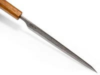 Das Messer sollte grundsätzlich gerade mit ziehendem oder schiebendem Schnitt geführt werden, ohne großen Druck. Vermeiden Sie, um die Schärfe zu erhalten, auf Stein, Glas oder anderen harten Unterlagen zu schneiden. Zum Nachschärfen auf keinen Fall „Wetzstahl“ verwenden. Empfohlen werden Wasserschleifsteine (Körnung: 400-1200 für Vorschliff, 3000 für den Feinschliff, 6000 oder mehr, um die Klinge abzuziehen) und ggf. ein Abziehleder.