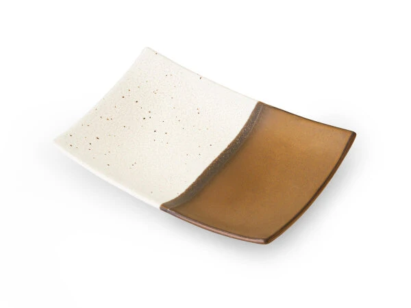 Servierplatte der Geschirrserie Sou, japanische Keramik, Steingut. Sehr schöne, leicht rustikale Anmutung. Die Goldglasur ist spülmaschinenfest. Sou ist ein Geschirr Set aus dem Hause Miyazaki, einer sehr bekannten Keramik Marke mit Sitz in der Keramikhochburg Toki, Präfektur Gifu. Das Porzellan aus Toki genießt in Japan und weit darüber hinaus einen hervorragenden Ruf. Toki ist eine der traditionellen Hochburgen für Porzellan und Keramikherstellung in Japan. Das Geschirr Set Sou aus Steingut wird in sehr hoher Qualität und mit typisch japanischer, außergewöhnlicher Ästhetik handwerklich hergestellt und zeichnet sich durch seine Schönheit aber auch Robustheit aus. 2 Größen erhältlich.