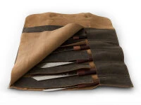 Bitte beachten Sie unseren Sicherheitshinweis für dieses Produkt. Leder ist ein natürliches Material und bietet einen guten aber keinen 100%igen Schutz. Sehr scharfe Messer können das Leder auch durchdringen, so dass es zu Verletzungen kommen könnte. Achten Sie darauf, die Messer sorgfältig in die Messertasche einzulegen, so dass zu große Spannungen an der Klinge vermieden werden. Auch sollten Sie die Tasche nicht zu straff zusammenrollen und verschließen. Es ist grundsätzlich sicherer, die gerollte Messertasche in Höhe der Messergriffe zu fassen, so dass es auch bei einer evtl. beschädigten Tasche zu keinen Verletzungen kommen kann. Vielen Dank für Ihre Sorgfalt.