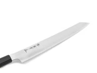 Das ideale Messer für anspruchsvolle Puristen. Geschmiedet werden die Messer dieser Serie von Meister Suogo Yamatsuka, der bekannt dafür ist, außergewöhnliche, japanische Messer zu produzieren. Er hat sich auf die Verarbeitung von Ginsan Silver-3 Stahl spezialisiert. Die Messer sind korrosionsbeständig und haben ein extrem hohes Schärfepotenzial. Das Messer ist beidseitig geschliffen, hat einen Vollholz Griff aus